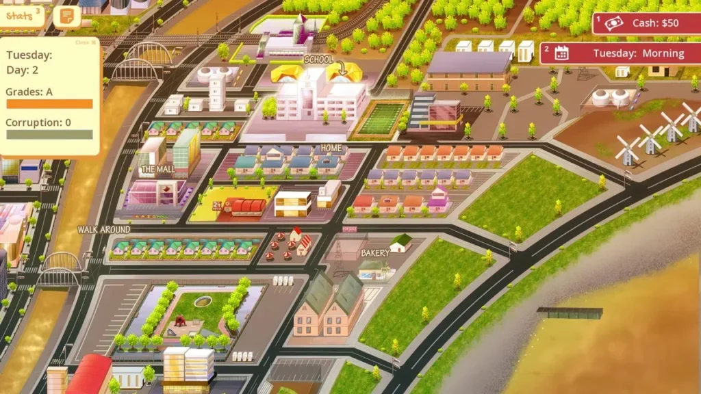 | 7:00 PM | Study for exams | Relax and watch TV | Boosts academic performance, affecting future school events. / Lowers stress, potentially unlocking new dialogue options about pop culture. |